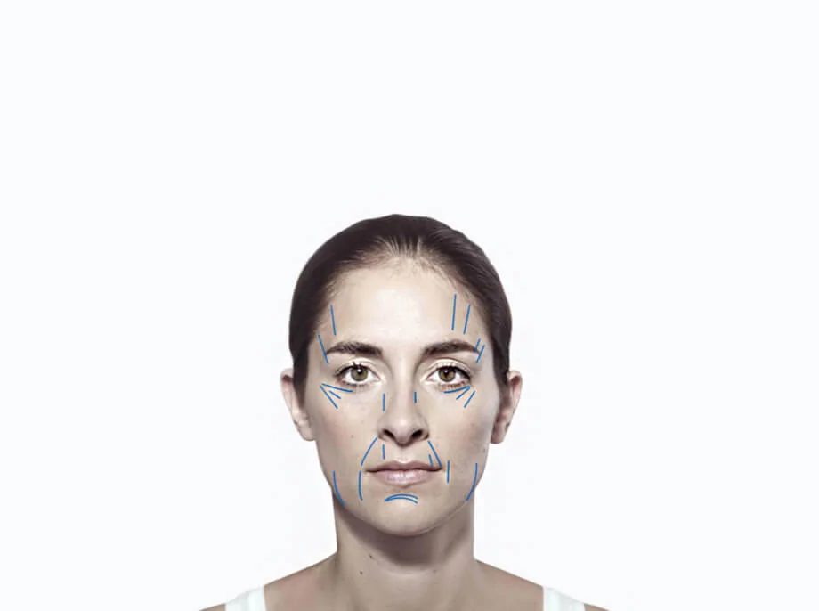da die Haut dazu neigt, sich entlang bereits vorhandener Falten zusammenzudrücken. Die zarte Haut um die Augen und Lippen ist besonders empfindlich.